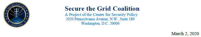 Alongside Former House Speaker Newt Gingrich, I am an honorary co-chairman of the Secure the Grid Coalition, which was founded in 2014 by the Center for Security Policy to address the incredible vulnerabilities of the U.S. electric grid to all hazards.
