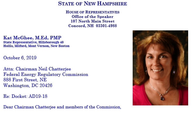 New Hampshire State Representative Kat McGhee just submitted a letter to the Federal Energy Regulatory Commission (FERC) White Paper Docket (AD19-18-000) emphasizing the importance of transparency in cybersecurity regulation.