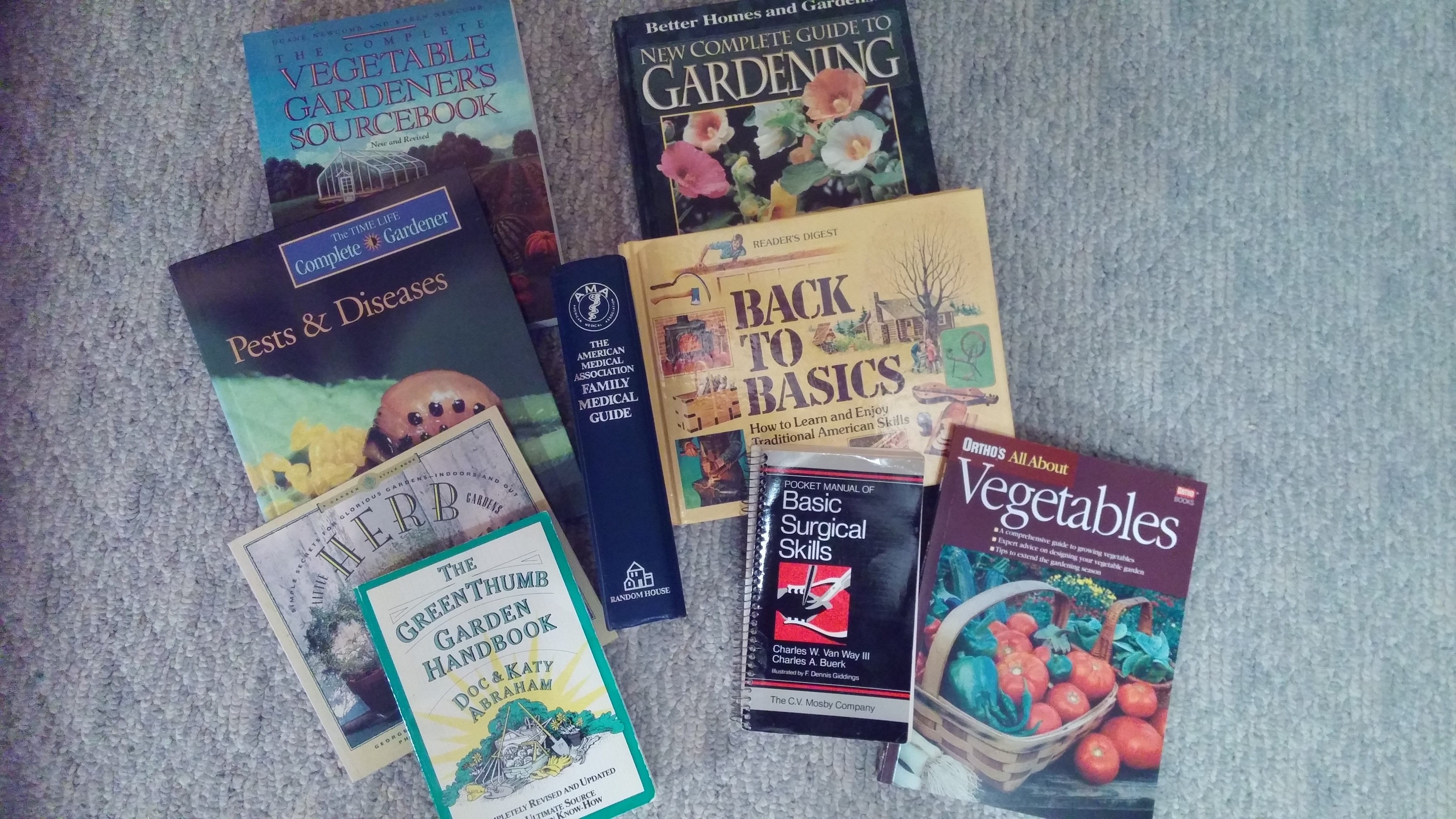 Skills vs Stuff — what is more important? Also, books we got at the library sale and other thoughts I had while weeding my garden.